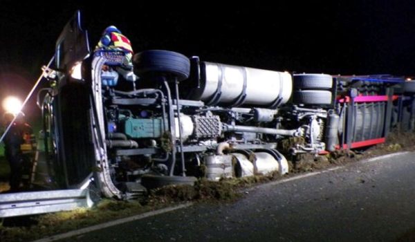 В немецкой земле Нижняя Саксония сошел с трассы и опрокинулся на бок грузовик под управлением белоруса.
