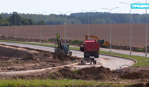 Строительство "бетонки" не стоит на месте. Специалисты уже укладывают асфальтированное покрытие по основному ходу – от кольца деревни Гибуличи до кольца Богушевича.