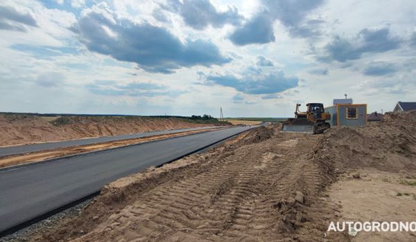 Уже заасфальтировали 1,5 километра в обоих направлениях основного хода и активно ведут работы по устройству колец. Закончили повалку леса и уборку урожая.