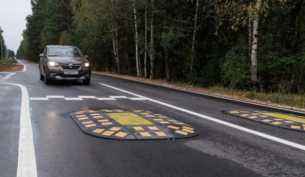На обновленной автодороге за МКАД, ведущей со стороны гольф-клуба в направлении Колодищей, заметили необычного вида искусственные неровности.