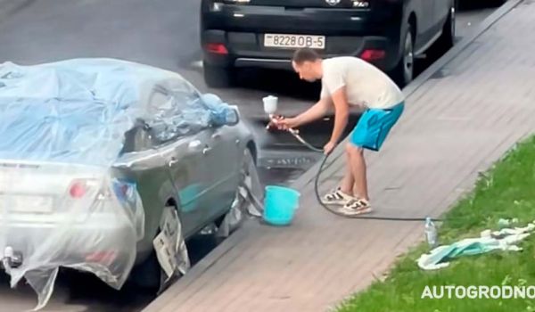 В Слуцке на улице Чехова, 47А засняли ситуацию, которая здорово всколыхнула интернет на этой неделе. Дело в том, что один из автолюбителей решил покрасить свой автомобиль прямо во дворе многоэтажки.