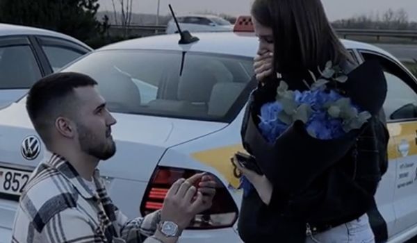 В TikTok завирусилось видео, на котором белорусский таксист делает предложение своей девушке прямо на дороге.