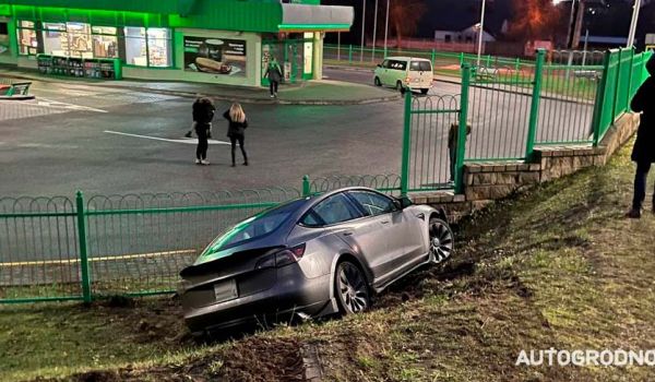 Обновлено. Кювет на улице Подольной принял не один автомобиль. В нем оказывались даже грузовики, а сегодня в нем "приземлилась" Tesla Model 3. Читатель АвтоГродно делится фотографиями.