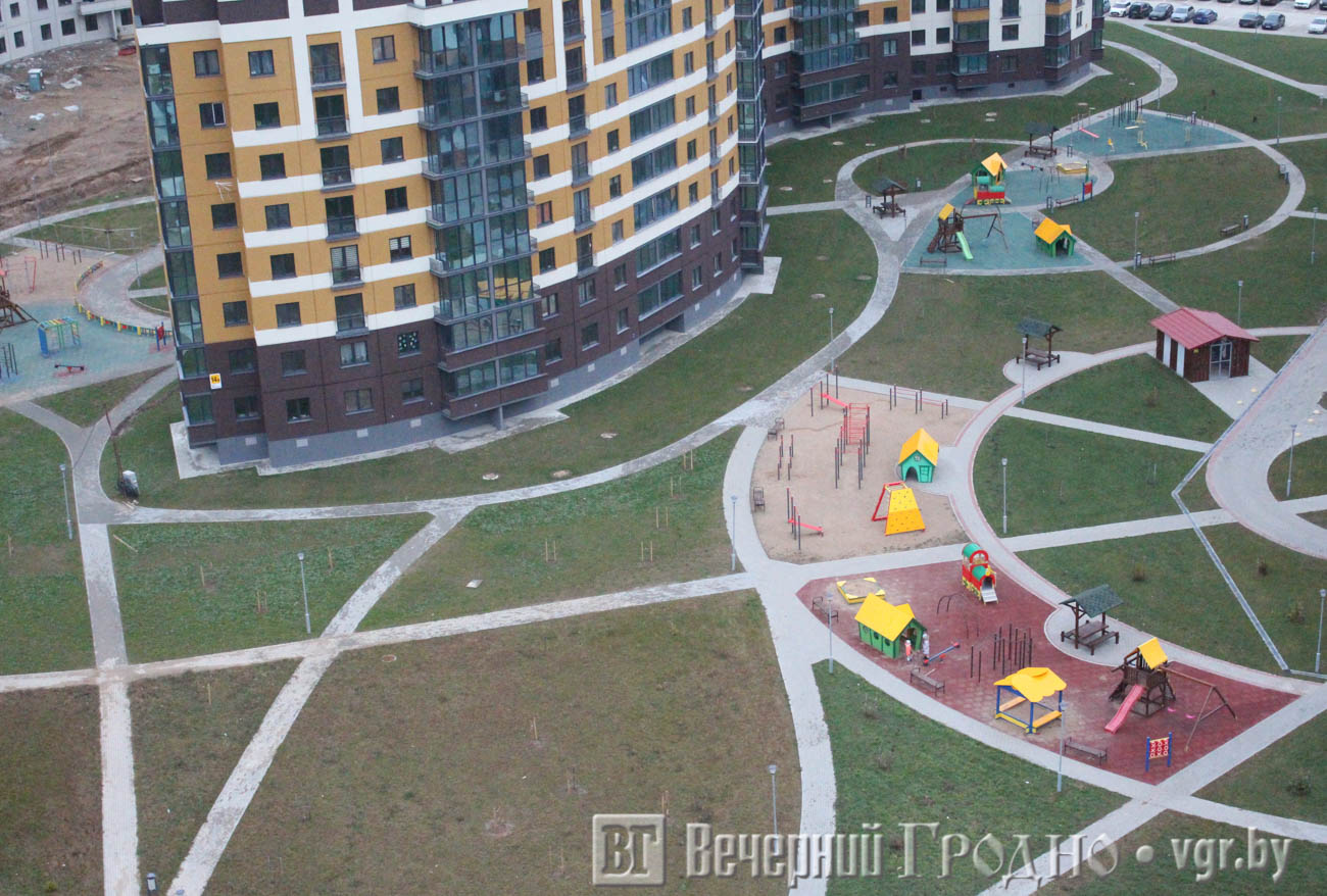 Сами же новые дома выделяются необычной, непривычной для Гродно архитектурой с большим количеством остекления.