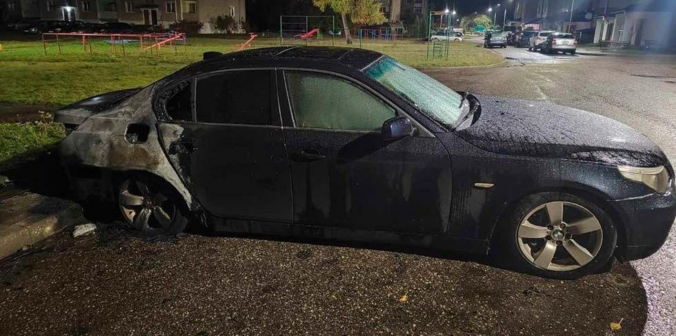 24 октября в 4 часа ночи спасателям в Ошмянах поступило сообщение о том, что на стоянке у многоквартирного жилого дома по пер. Мицкевича в райцентре горит легковой автомобиль BMW e60.
