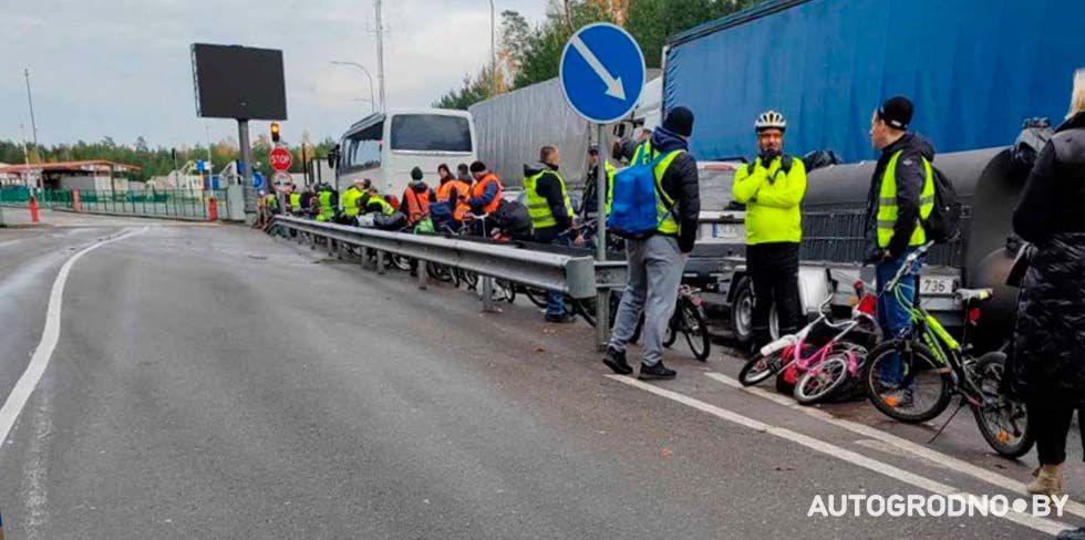 Например, едем из Беларуси в Литву на велосипеде: без очереди заезжаем в белорусский пункт пропуска, сразу подъезжаем на оформление документов, быстро проходим и следуем к нейтральной полосе в сторону Литвы. И вот здесь еще в октябре появилось новое правило: когда поднимается литовский шлагбаум, заехать вместе с транспортом может только три велосипедиста. Остальные остаются ждать, образуя очередь из велосипедов у шлагбаума.