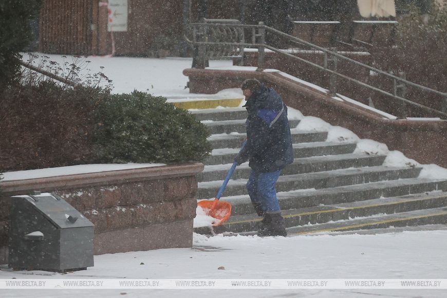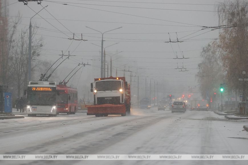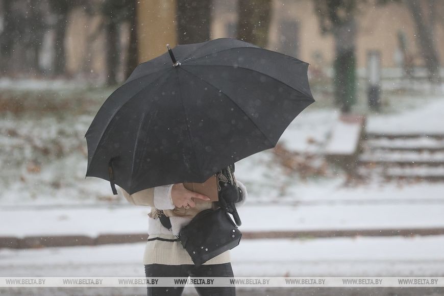 Напоминаем, мокрый снег и порывистый ветер принес циклон в Беларусь. Во многих районах ожидаются сильный снег, метель, а по западу на большей части территории гололед. На отдельных участках дорог сохранится гололедица. Ветер юго-западный, сильный порывистый.