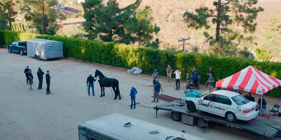 Они создали механизм, который преобразовывает линейное движение лошади во вращательное и передает его на диностенд.
