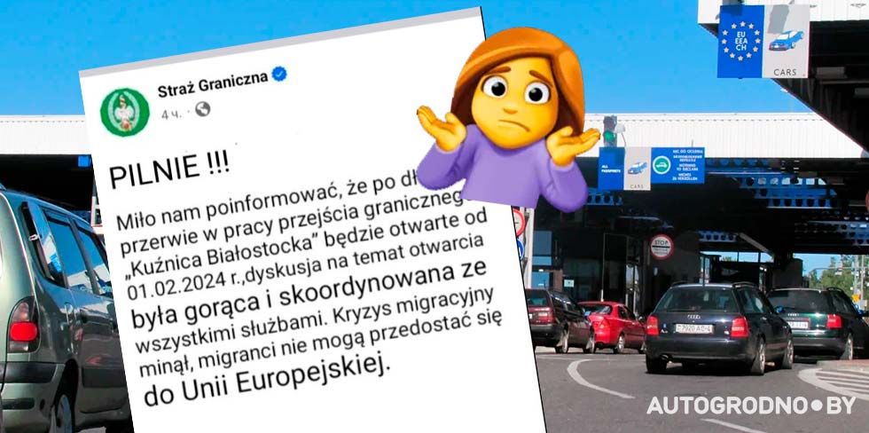 Сегодня в редакцию АвтоГродно приходят сообщения и "фото-доказательства" того, что с 1 февраля 2024 года польская сторона возобновляет работу пункта пропуска "Кузница". В качестве доказательств пользователи присылают скриншот заявления "Стражи граничной". Но радоваться рано.