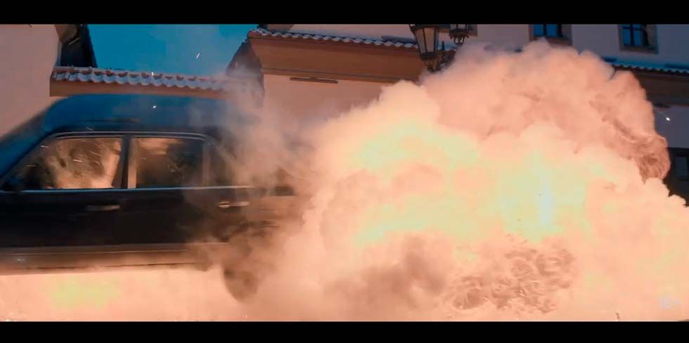 Эпизод со взрывом легкового автомобиля был самым зрелищным из тех, которые снимали в Гродно. На АвтоГродно есть отдельный материал с подрывом Mercedes, посвященный этим кадрам.
