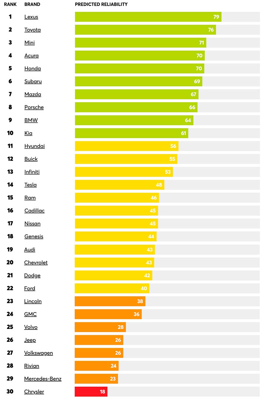 Фото: Рейтинг надежности Consumer Report