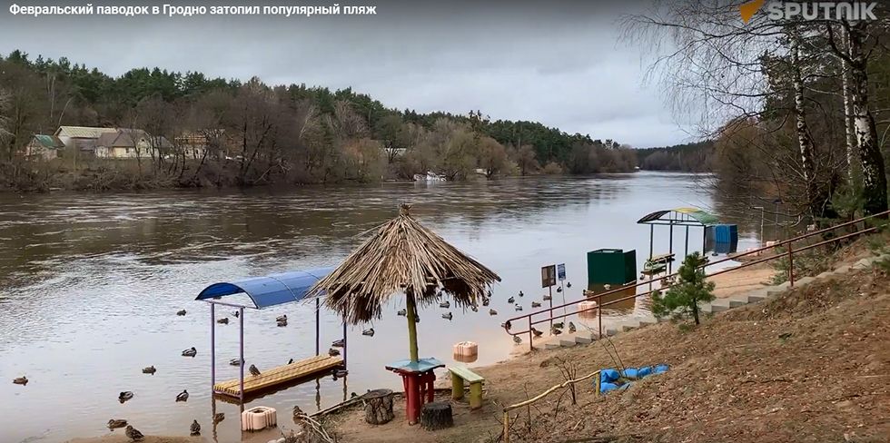 Пляж в Гродно стал местной достопримечательностью после того, как до некоторых грибков и кабинок для переодевания можно добраться только на лодке.