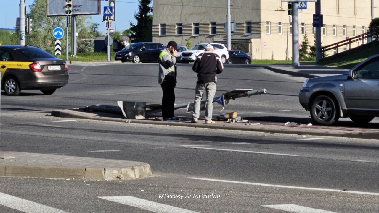После столкновения Suzuki вылетел на островок безопасности, где сбил дорожный знак и светофор.