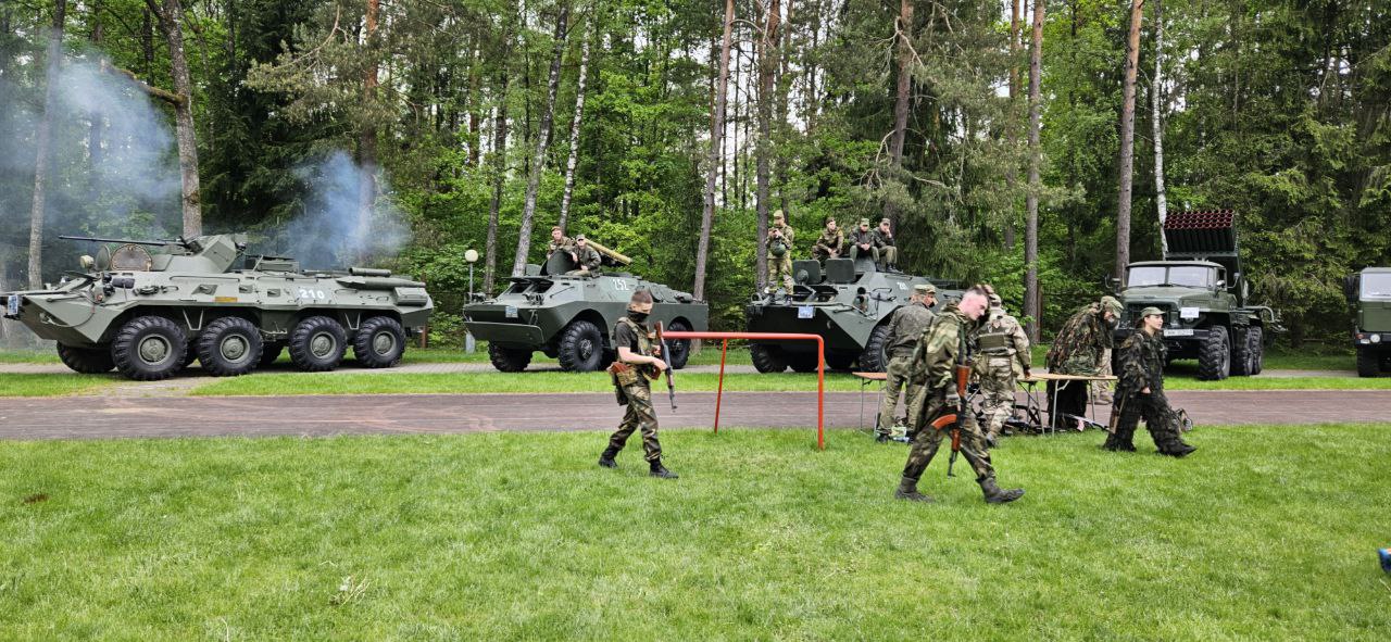 На следующий день, 10 мая, участников пробега пригласили в комплекс "Озерный", где военные выставили технику, показывали свое оборудование и даже с помощью дрона скидывали с неба для детей конфеты: