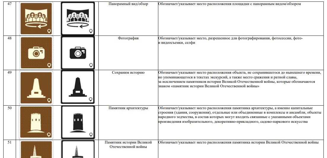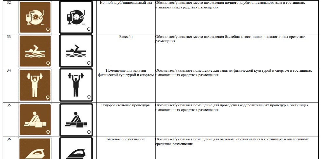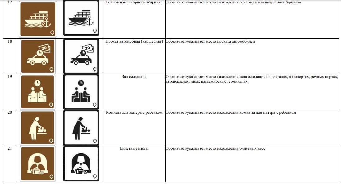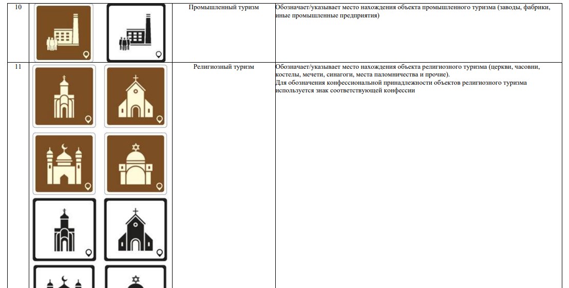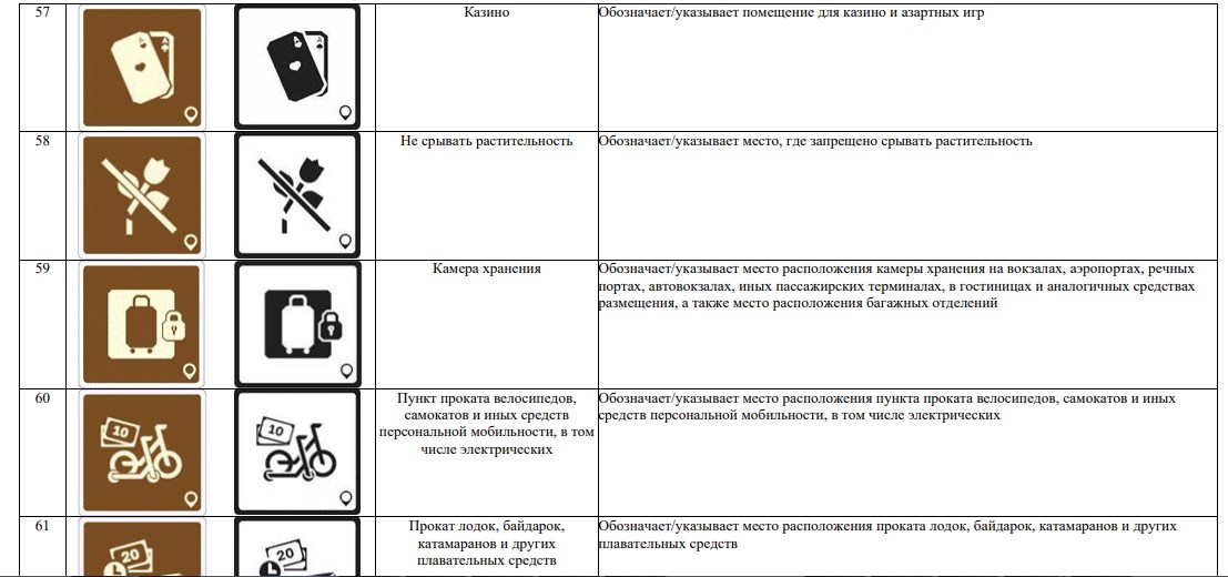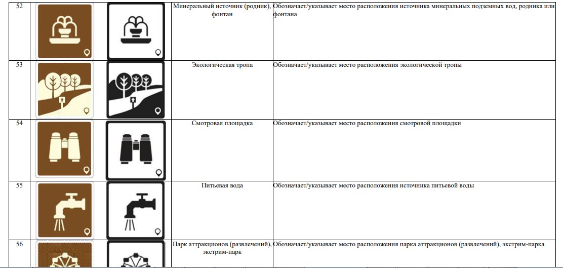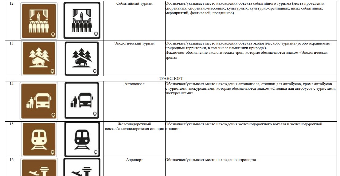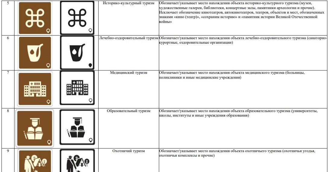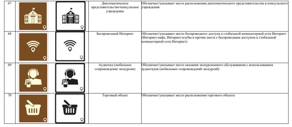 В новой системе значатся 70 символов. Они используются для обозначения объектов туристической индустрии (агроэкотуризм, активный туризм, гастрономический туризм), транспорта (автовокзал, аэропорт, каршеринг) и так далее.