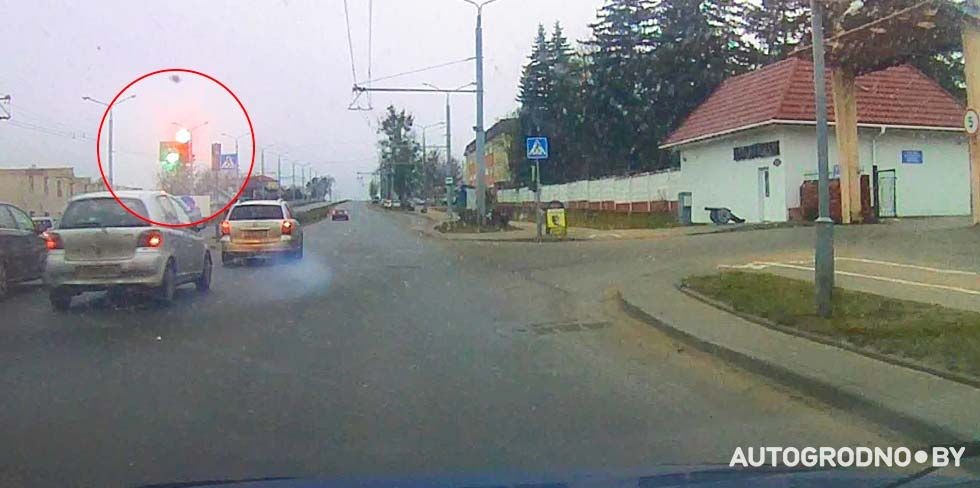 Задумались? Массовый проезд на красный в Гродно попал на видео