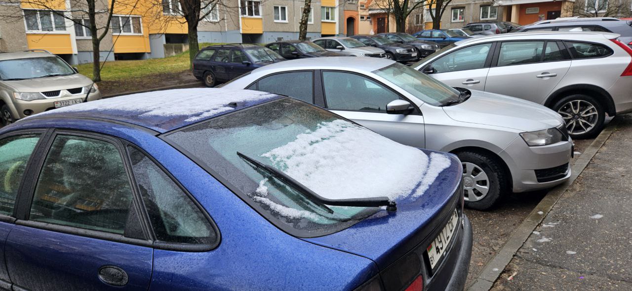 Остатки ночного снега можно лишь наблюдать на легковых автомобилях: