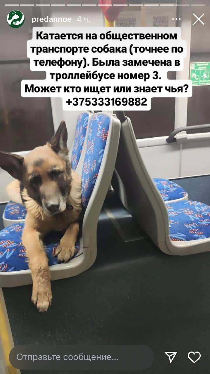Сообщения о поиске Найды увидела водитель троллейбуса №12, женщина взяла овчарку к себе в кабину и возила по Гродно до встречи с хозяйкой.