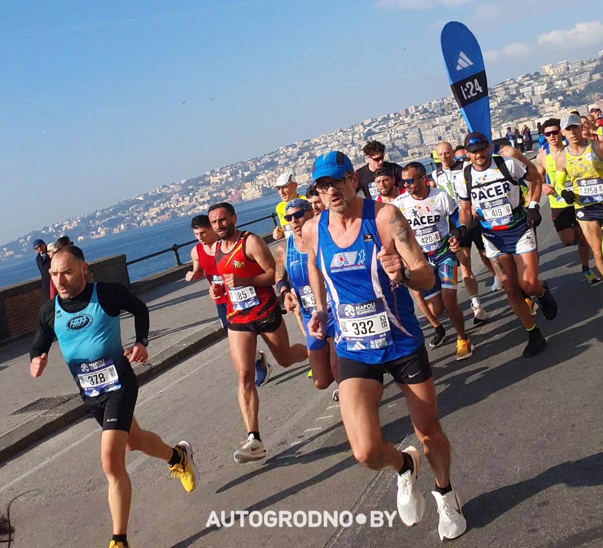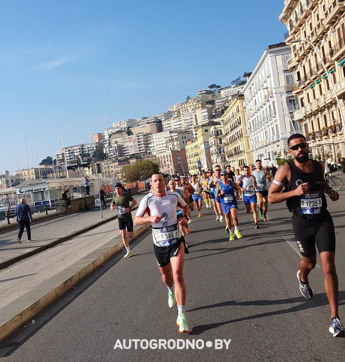 Итак, утро 23 февраля, Неаполь, мы получаем стартовые номера, сдаем наши рюкзаки в камеры хранения, переодеваемся и выходим на стартовую черту. И вдруг оказывается, что рядом с нами еще порядка 100 белорусов! Мы опять в приятном шоке. К слову, на старте было свыше 7 тысяч человек из 101 страны мира! Кстати, несмотря на плотный график и бессонную ночь, на старт мы вышли бодрые и решительно настроенные пробежать с хорошим временем.