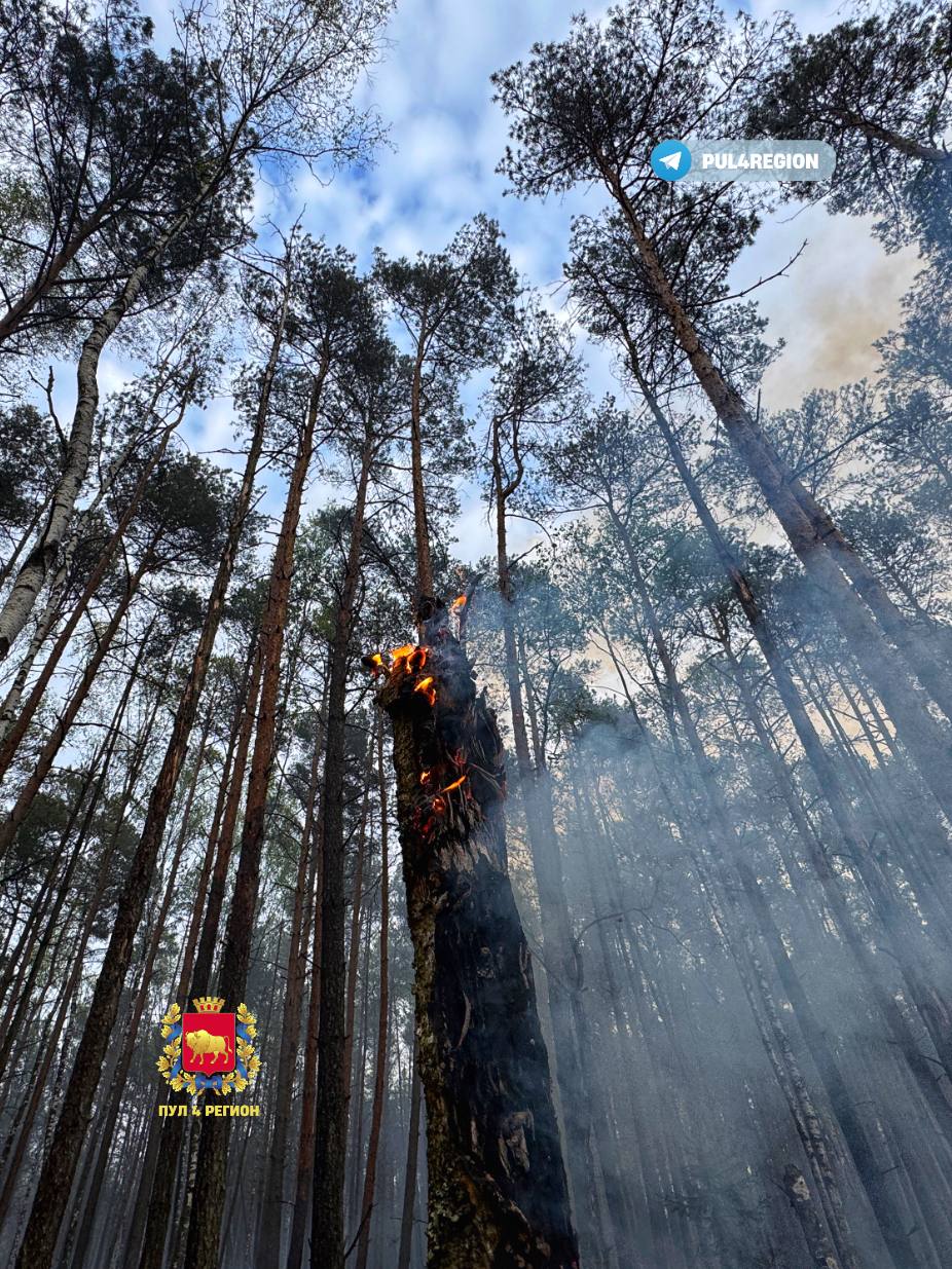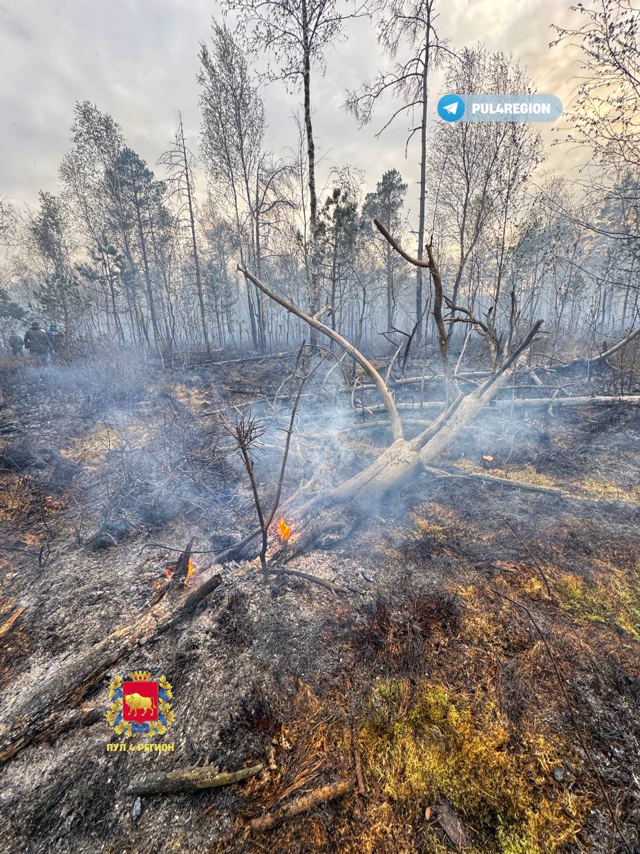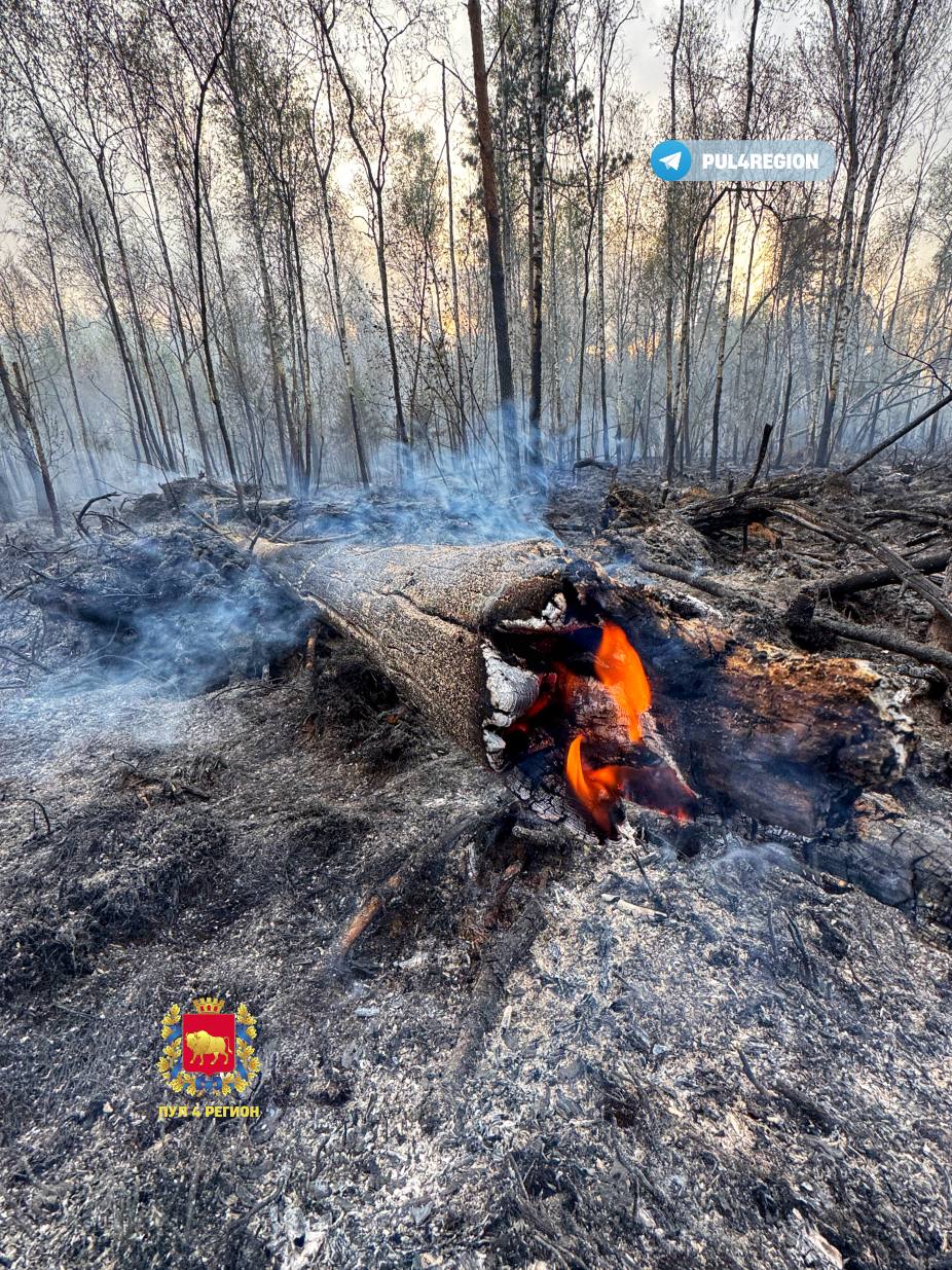 На месте пожара работали 11 единиц техники МЧС и 26 спасателей, а также 25 единиц техники и 100 человек лесхоза.