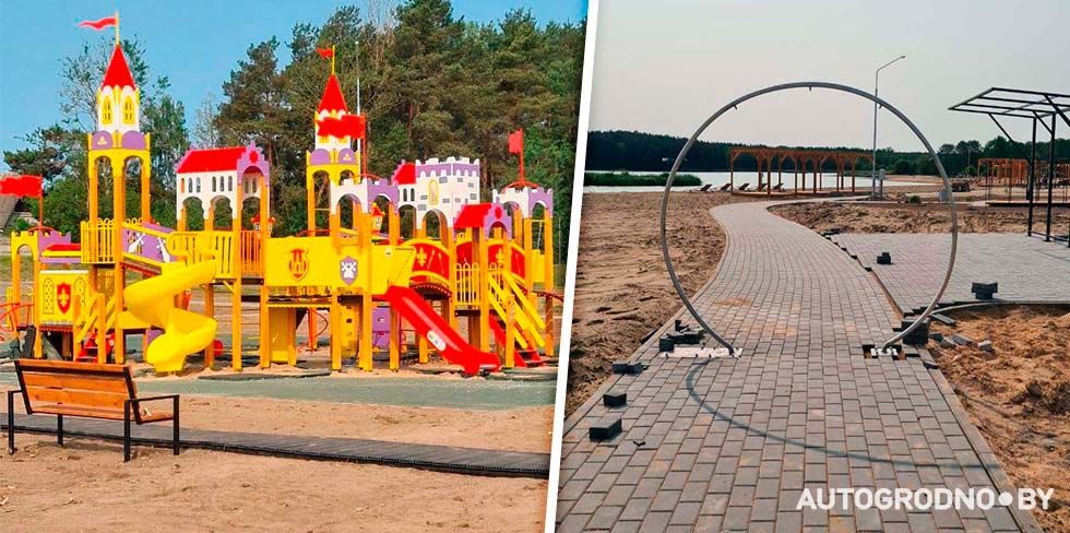 В этом году на Юбилейном озере создается первоклассная зона отдыха – обновляется пляжная зона и устанавливаются современные детские площадки. Работы уже подходят к финальной стадии и читательница АвтоГродно посмотрела, что там будет.