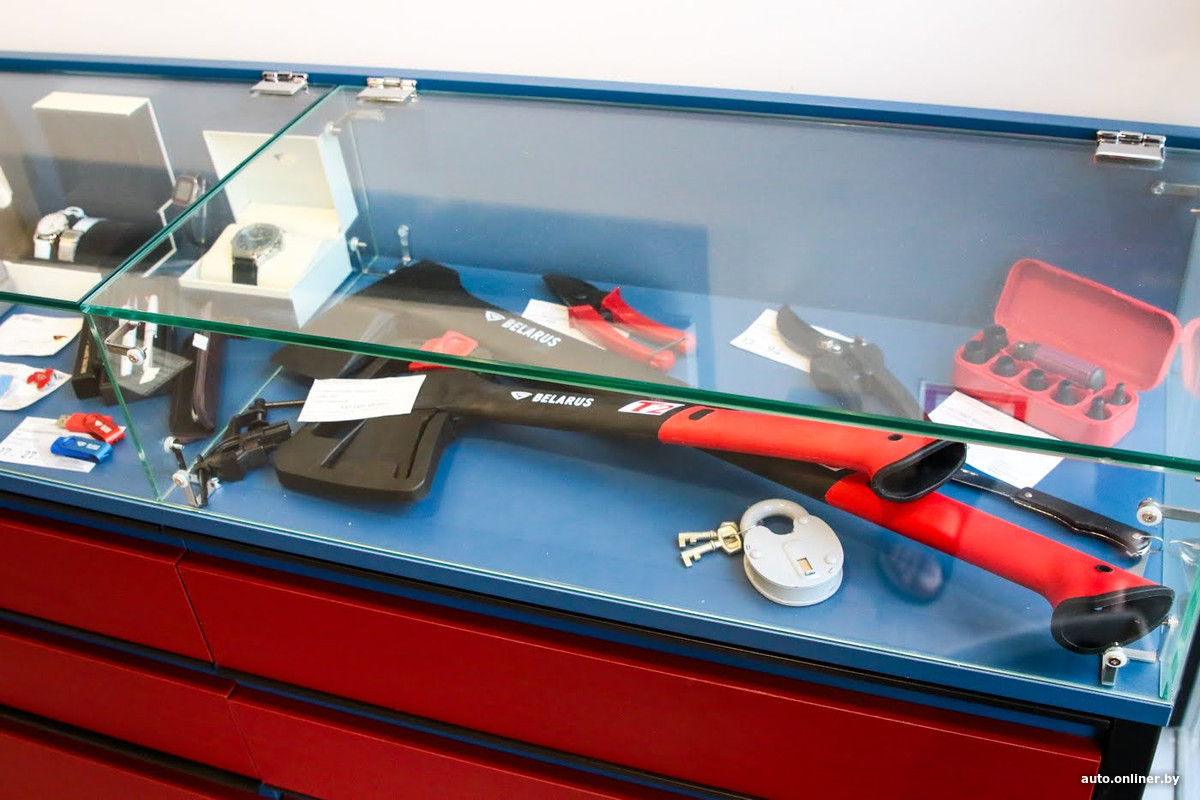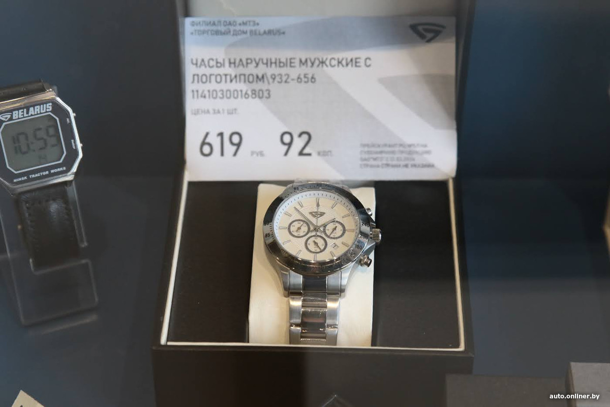Есть топор-колун за 132 рубля, а еще часы, резиновые сапоги, майки, рюкзаки, модели тракторов и другой фирменный мерч предприятия.