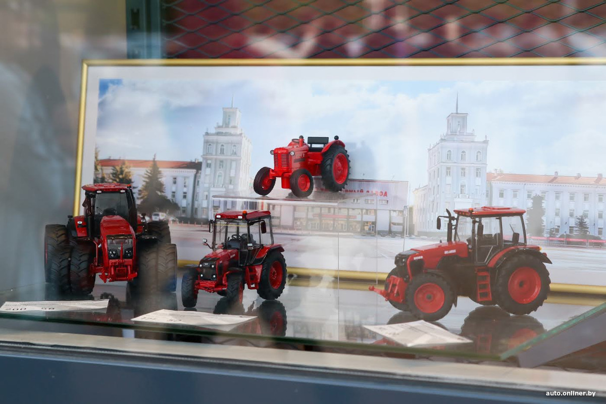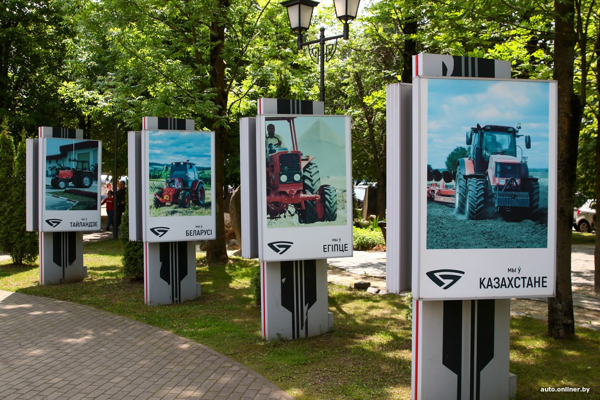 Экспозиция на центральной улице завода посвящена выпускаемой продукции. Тут и совсем маленькие образцы и тракторы-гиганты.