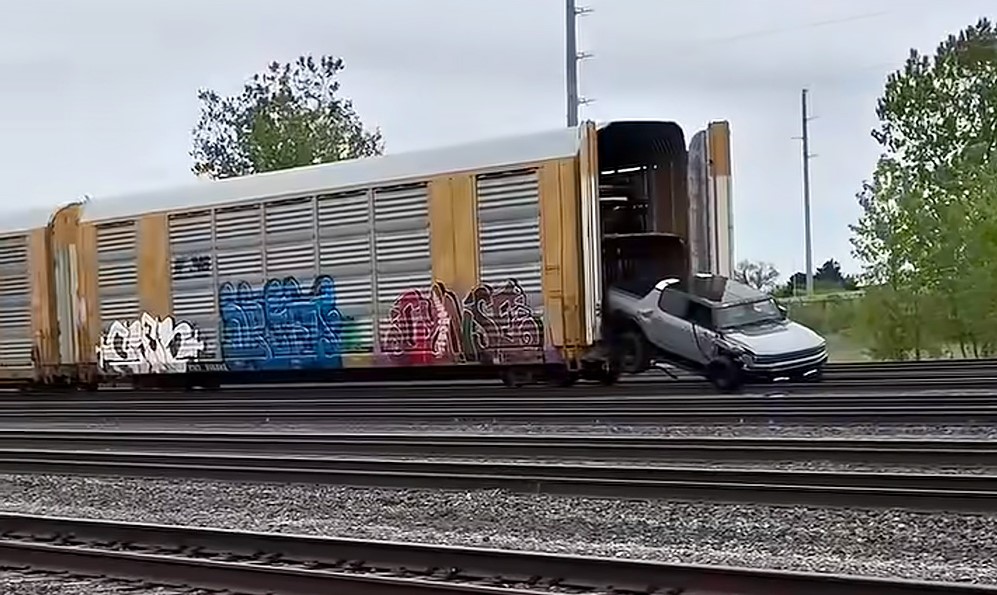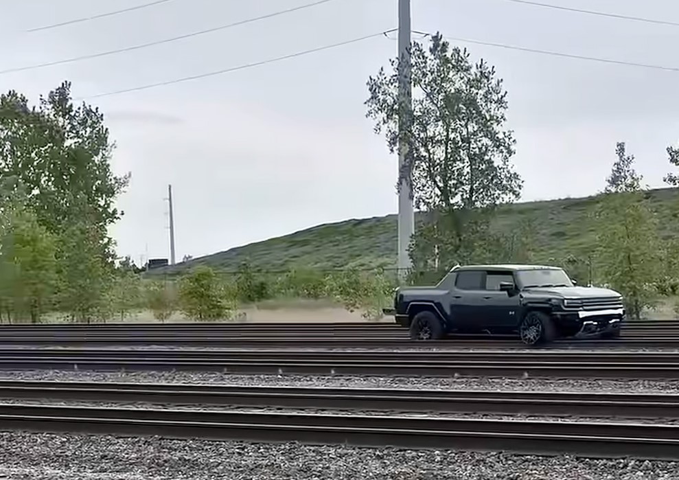 Эта история произошла в Детройте на железной дороге, по которой поездами перевозят новенькие Hummer EV с завода GM Factory Zero.