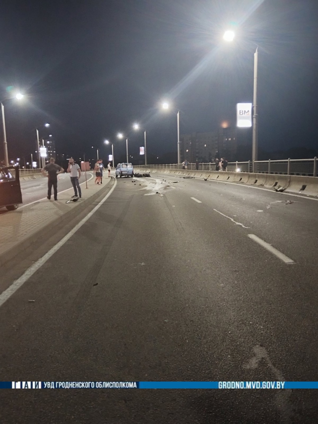 Поздним вечером в Гродно произошло ДТП с участием мотоциклиста.