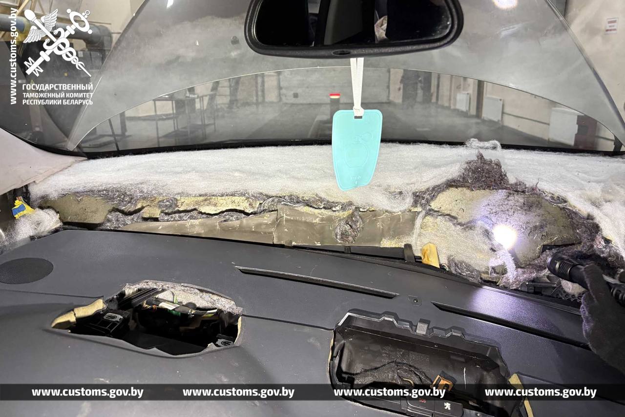 Таможенники направили авто на осмотр с применением мобильного инспекционно-досмотрового комплекса. На полученной сканограмме установлены нехарактерные вложения в передней части панели управления автомобиля.