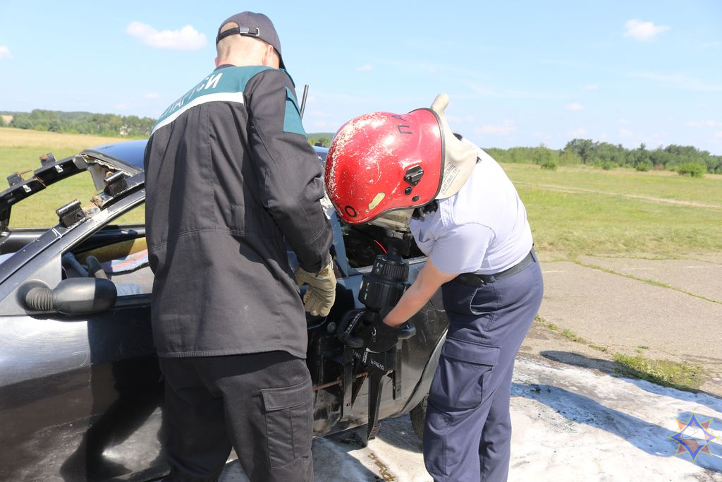 Во время пресс-встречи спасатели продемонстрировали технику и вооружение ПАСО Гродненского ОУМЧС для работы в различных ситуациях.