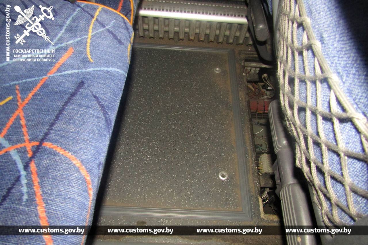 Место сокрытия установлено гродненскими таможенниками в результате досмотра, на который автобус направили по результатам сканирования транспортного средства с применением инспекционно-досмотрового комплекса.