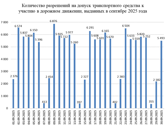 Сообщается, что в сентябре 2025 года выдано 136 906 разрешений на допуск транспортного средства к участию в дорожном движении.