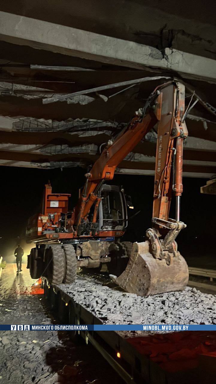 Водитель грузовика Volvo перевозил на полуприцепе экскаватор. Он не учел габариты транспорта и повредил пять балок пролетного сцепления путепрвода, сообщает Милиция Минщины.