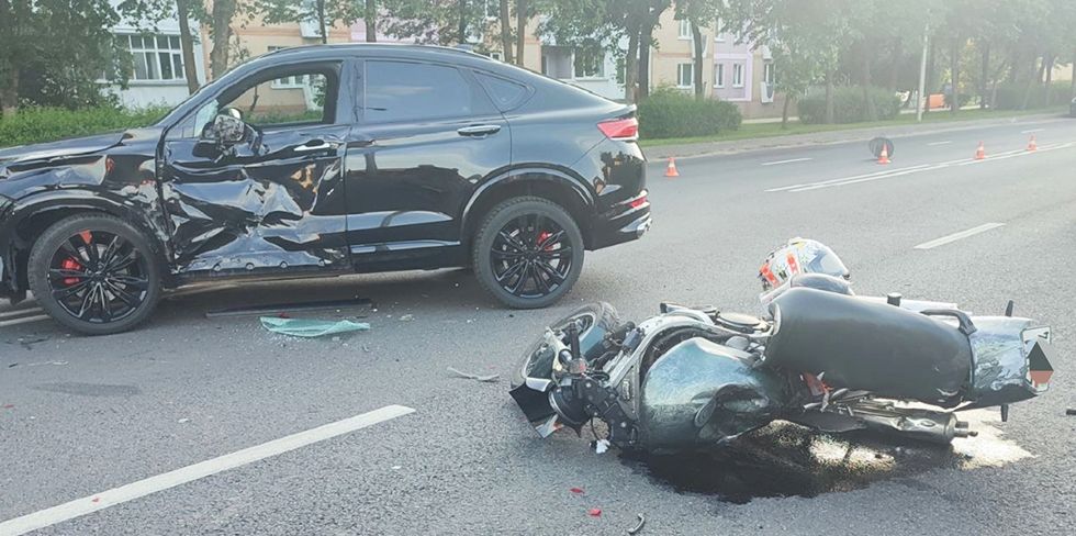 По горячим следам сообщалось, что 42-летний водитель автомобиля Geely двигался по улице Качана. При осуществлении поворота налево не предоставил преимущество 19-летнему мотоциклисту, который двигался в направлении улицы Мицкевича.