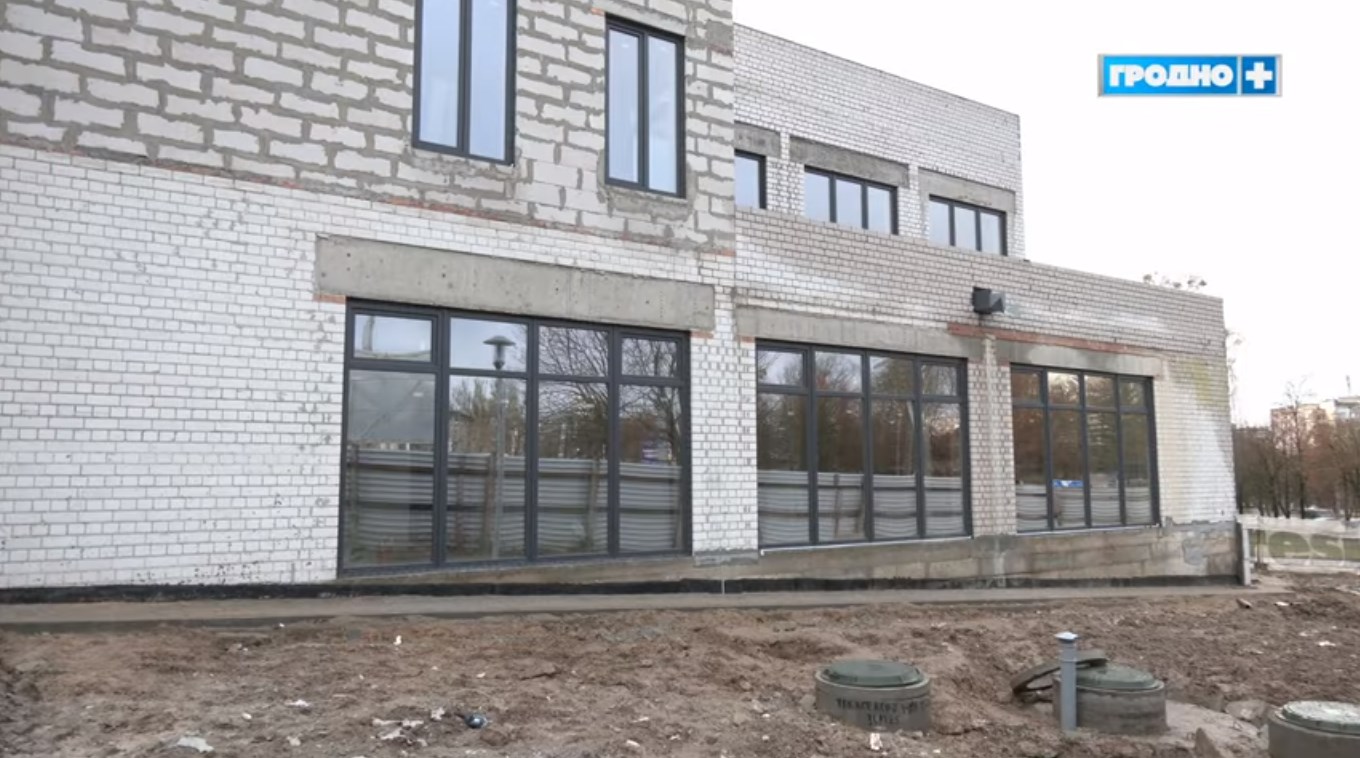 На сегодняшний день выполнили все работы по созданию конструкции здания, остекление, а также все кровельные работы, рассказывает телеканал "Гродно Плюс".
