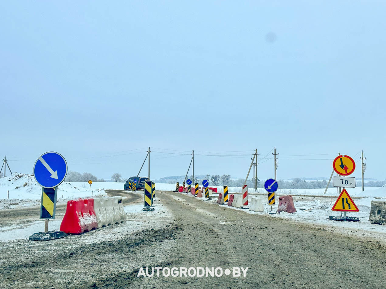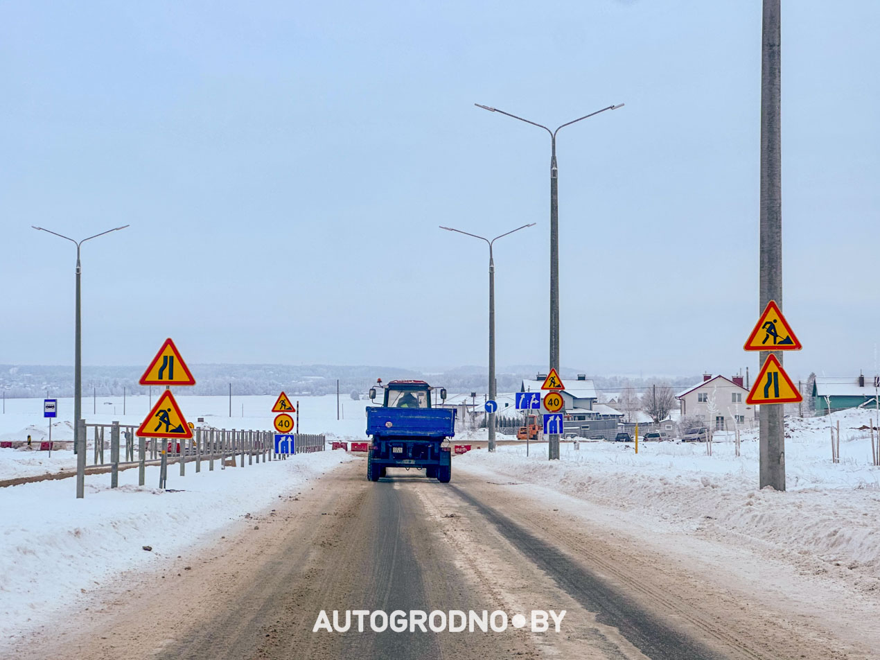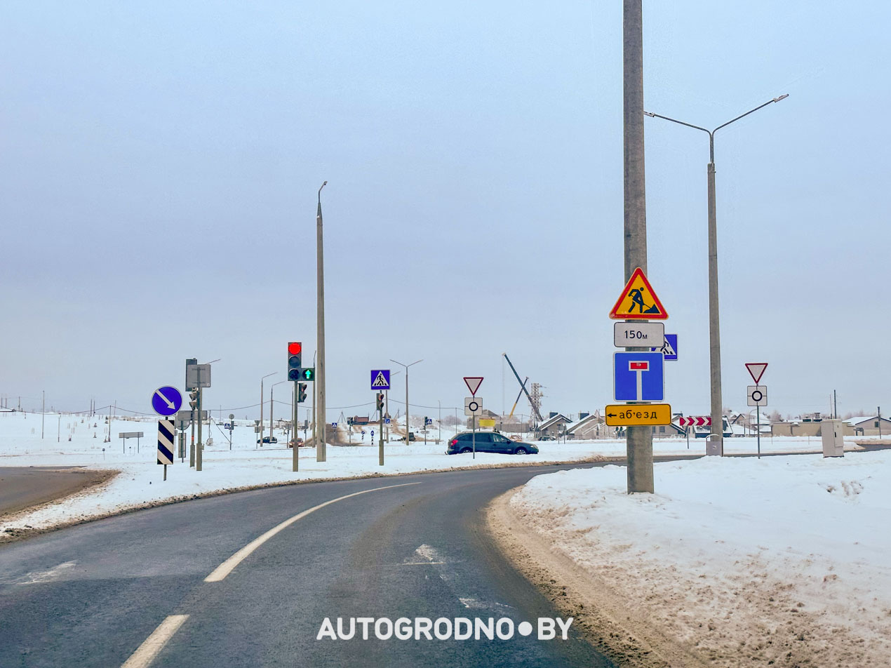 У выезда из Гродно в сторону Поречья оставили стандартные знаки, указывающие направление движение по полосам.