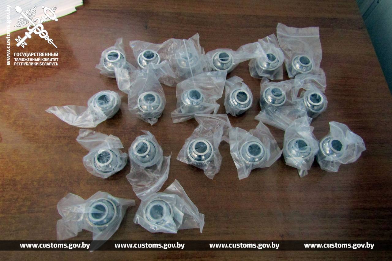 "При дальнейшем досмотре из панели приборов и ниши под задним сиденьем таможенники изъяли 20 новых подшипников", – сообщает телеграм-канал "Таможенные органы Беларуси".