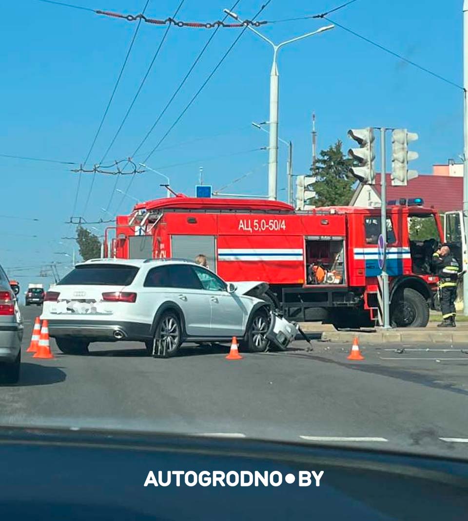 Сегодня, 27 сентября, около часа дня на улице Горького в Гродно произошла авария, в которой повредили два дорогих автомобиля AUDI. Читатели АвтоГродно делятся первыми снимками.