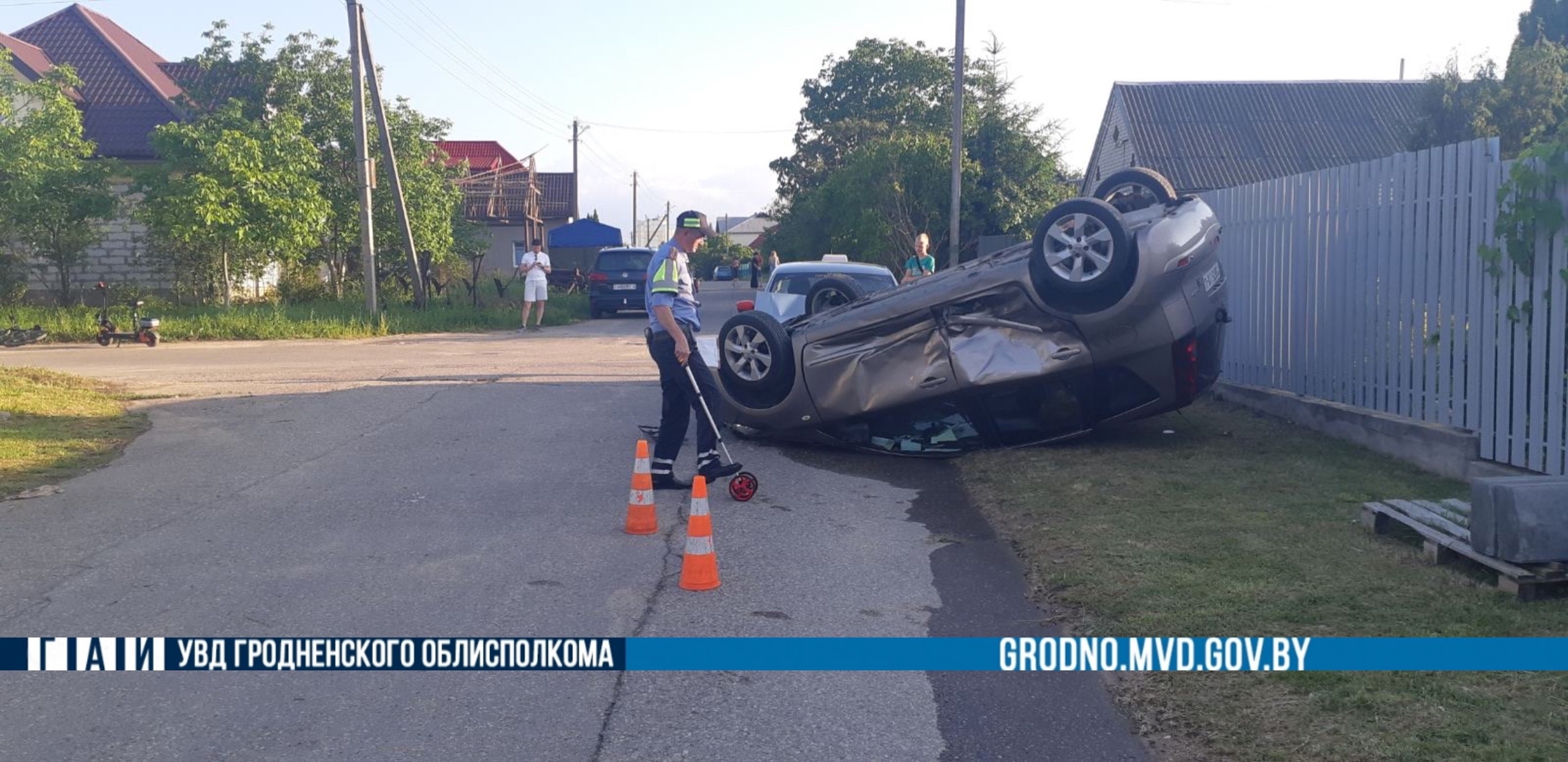 На тихой улочке в Гродно водитель такси умудрился опрокинуть другую легковушку. В ГАИ прокомментировали