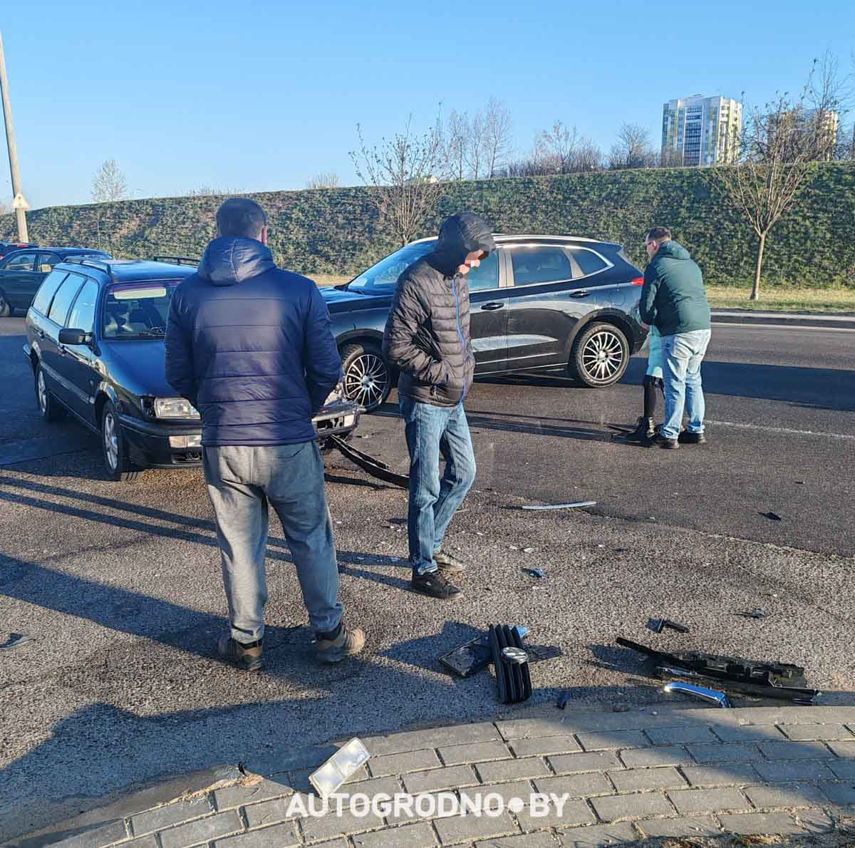 – Авария произошла на повороте возле дома номер 83 по улице Белые Росы. Могу предположить, что водитель Haval Jolion поспешил повернуть налево перед приближающимся Volkswagen Passat B4, но не успел. Удар пришелся в область левой фары "Пассата", – рассказывает автор фотографий.