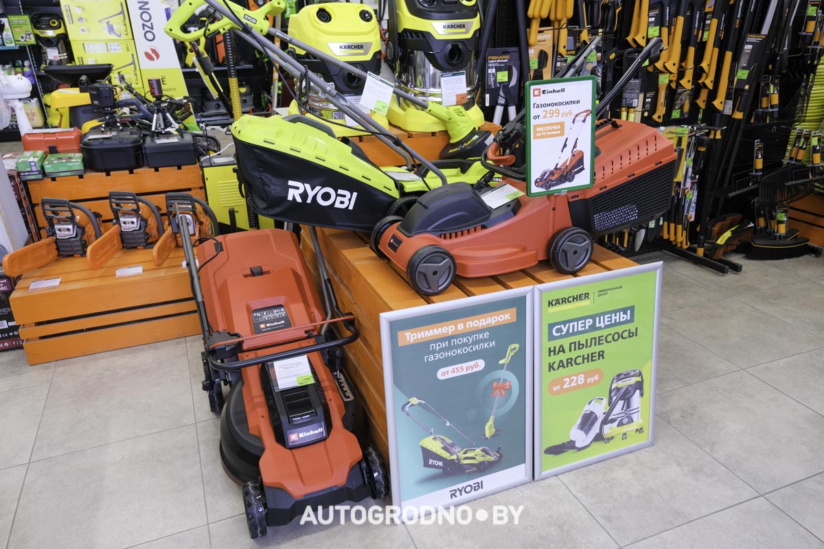 В гродненском магазине представлены 4 модели аккумуляторных газонокосилок "Айнхель".