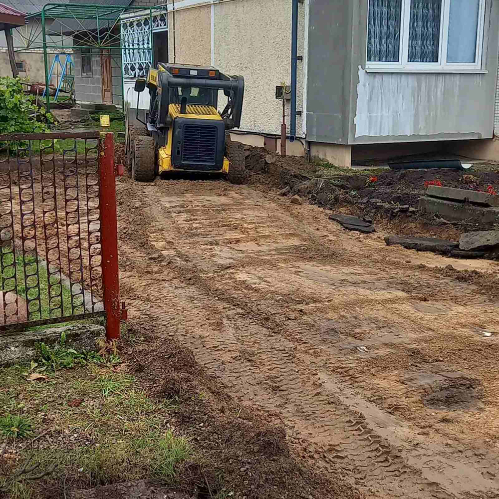 • планировка участка, ландшафтные работы, съем верхнего слоя земли (под плитку);