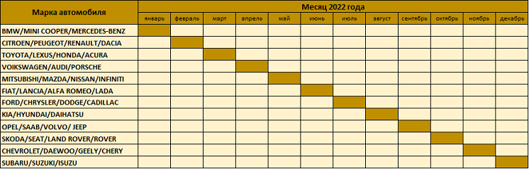 График участия автомобильных марок в акции: