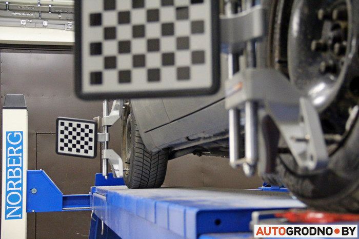 1. Проверка и регулировка углов установки колес (развал-схождение)