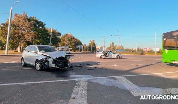 Обновлено. На бермудском треугольнике площади Декабристов в Гродно снова авария. На этот раз SEAT столкнулся с пассажирским автобусом.