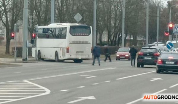 Сегодня, 21 марта, около 12:30 на встречной полосе заметили остановившийся туристический автобус. Как сообщают читатели АвтоГродно, автобус катился по проспекту без водителя.