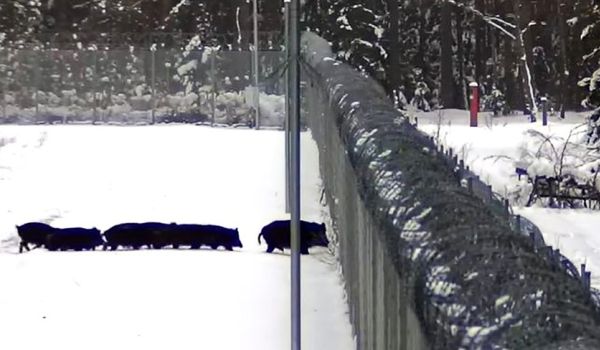 Литовские пограничники в Варенском районе, прямо у границы с Беларусью, зафиксировали семью из 12 диких кабанов.