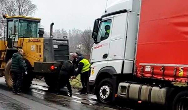 Сегодня в д.Бенякони Вороновского района гражданин Сербии забуксовал на обочине.