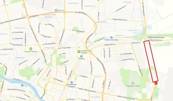 Улицу Лизы Чайкиной в Гродно закрывают на 4 дня. Знак "кирпич" установят в 10:00 27 сентября (среда), а уберут – к 5:00 1 октября (воскресенье).